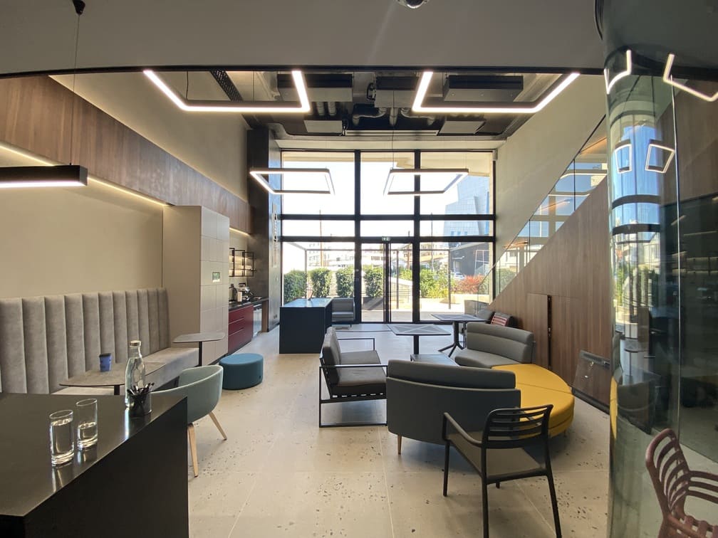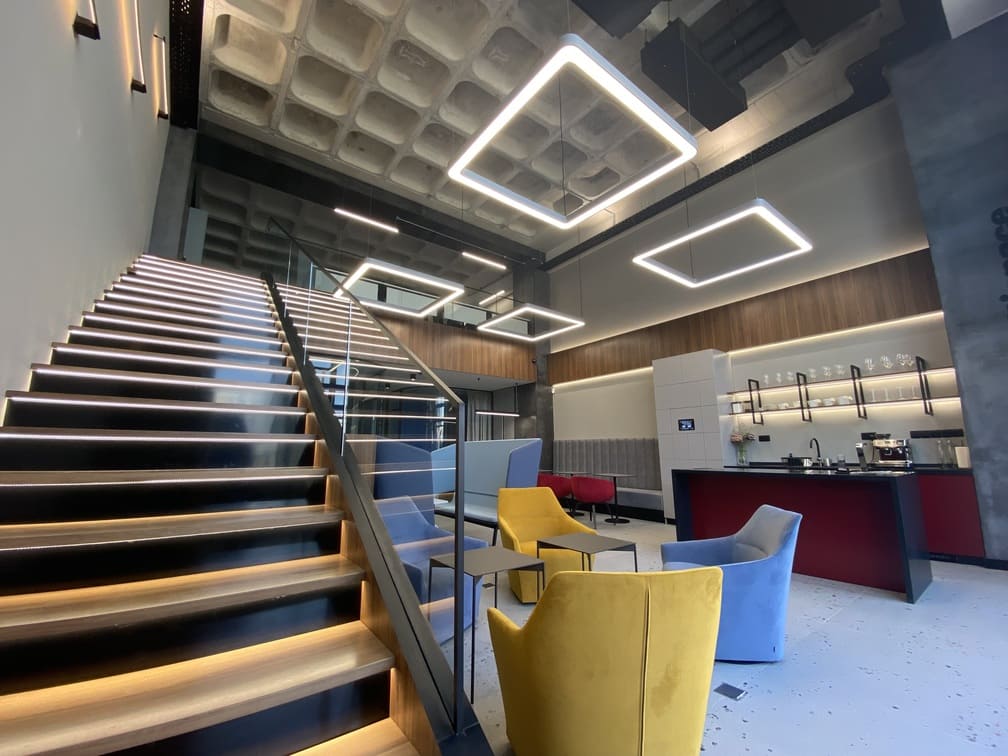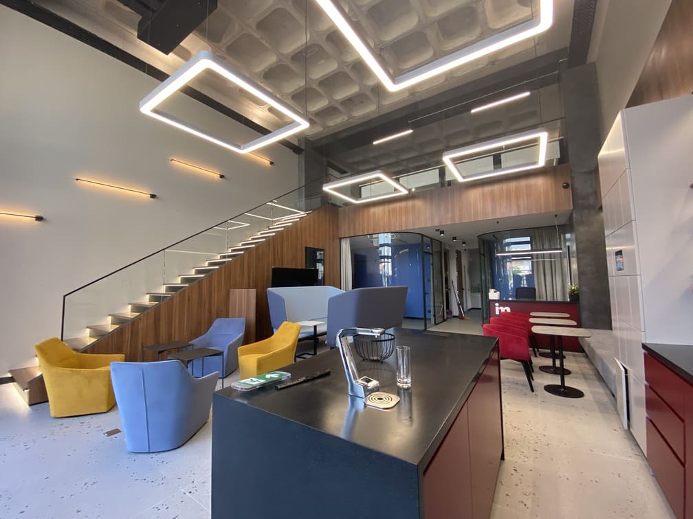Управление офисом: освещение, управление шторами, климат (кондиционирование), система резервации рабочих мест, доступ по Face ID, умные локеры и шкафчики с открытием по Face ID